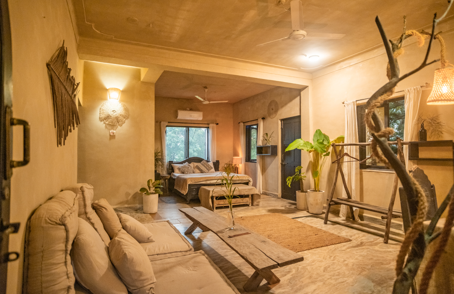 "Experience a tranquil stay at Palmorama Retreat Home, where comfort meets nature. Book now to secure your perfect getaway and immerse yourself in the serene beauty of Mandrem."